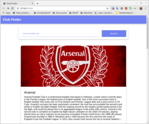 - Search Bar : Komponen yang terdiri atas elemen <input> dan <button> dan berguna untuk melakukan pencarian club sesuai dengan input pemakai.